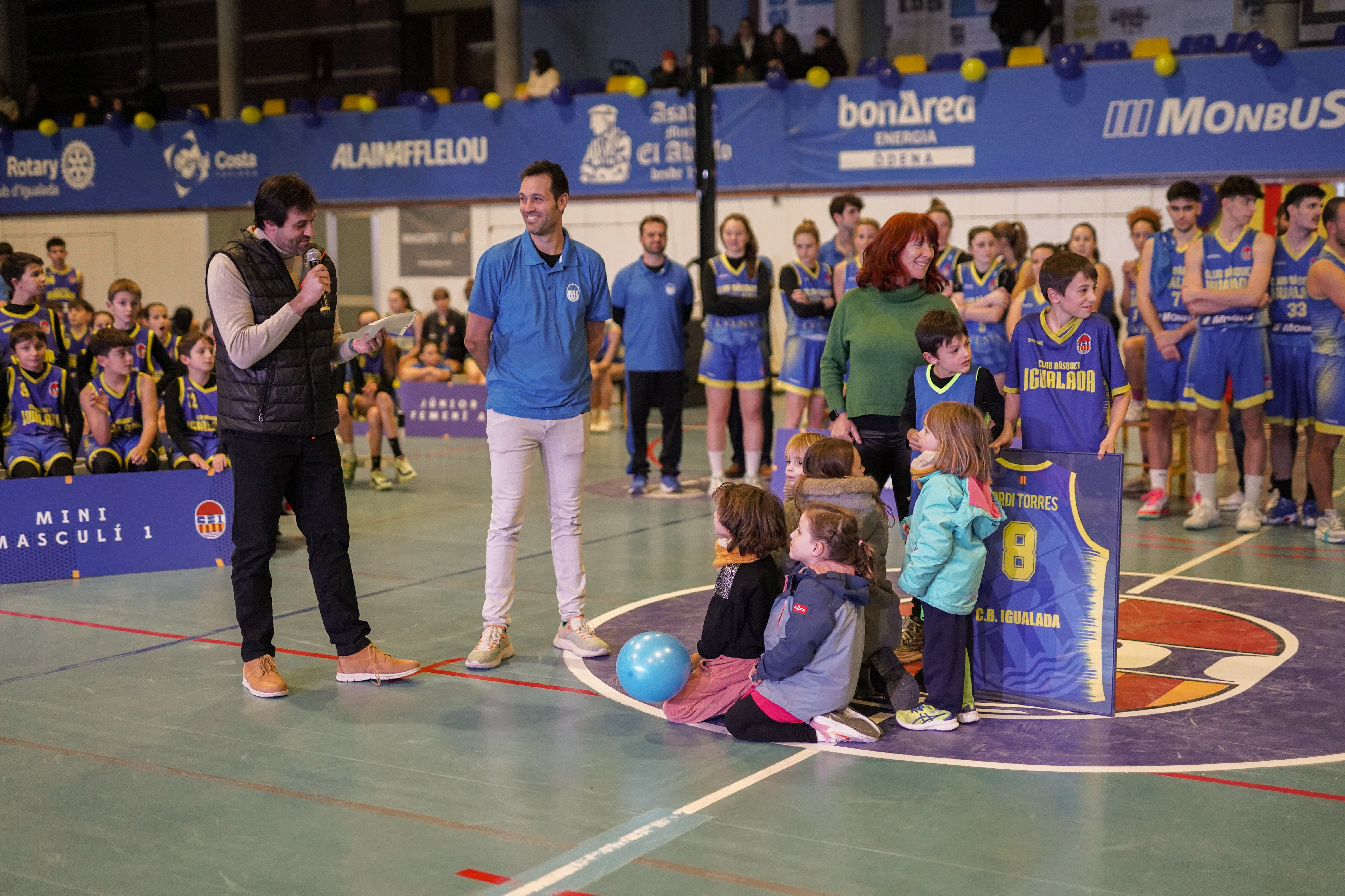 El passat 12 de gener de 2024, el Club Bàsquet Igualada va viure un moment especial i carregat d’emoció durant la festa de presentació de tots els equips del club. En aquesta ocasió, l’acte va ser molt més que una simple presentació; va ser un agraïment i reconeixement sentit i emocionant per a un jugador que ha deixat i deixa una empremta indeleble en la història del club: Jordi Torres.